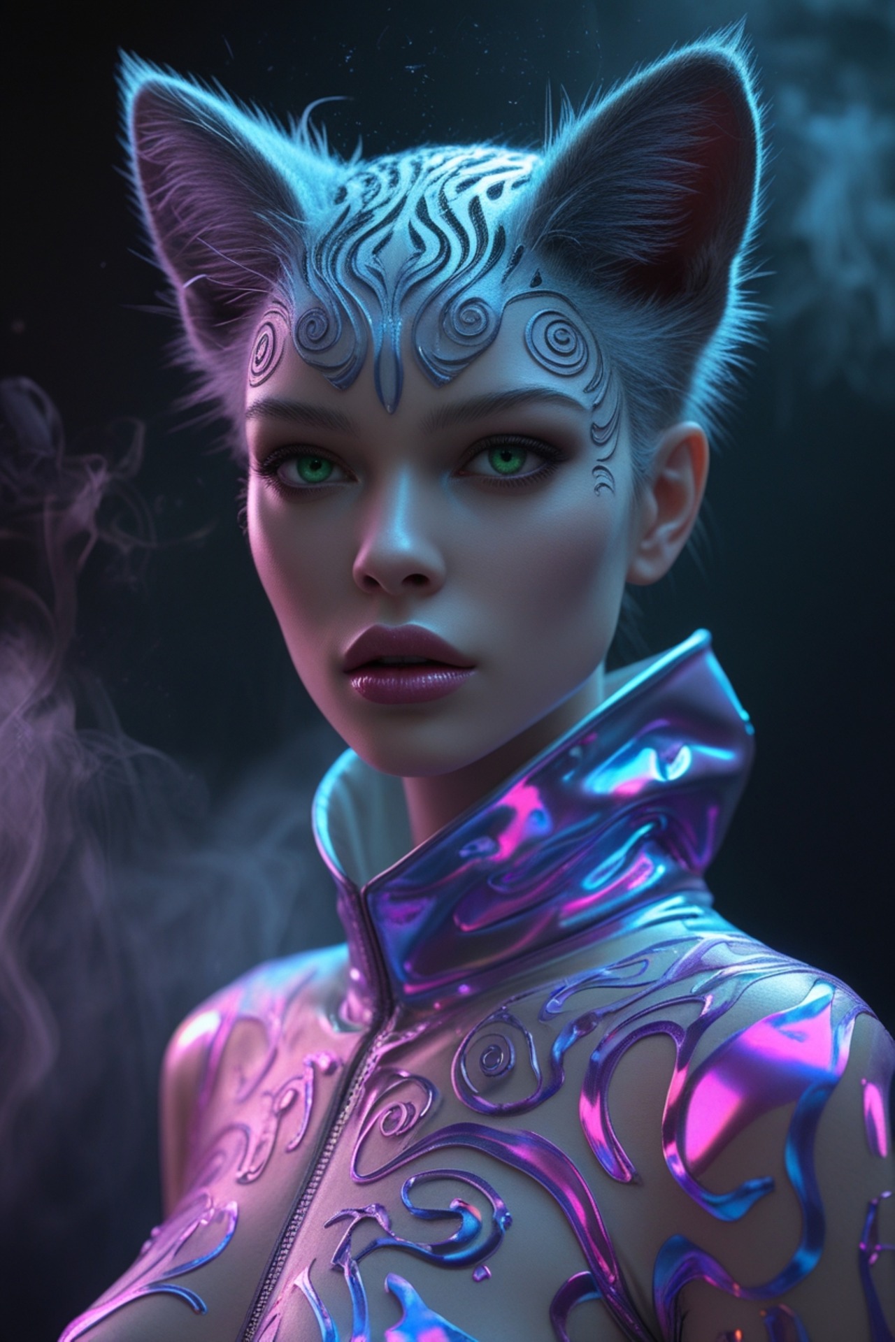 Sci-fi cat art、未来都市の雰囲気を演出。